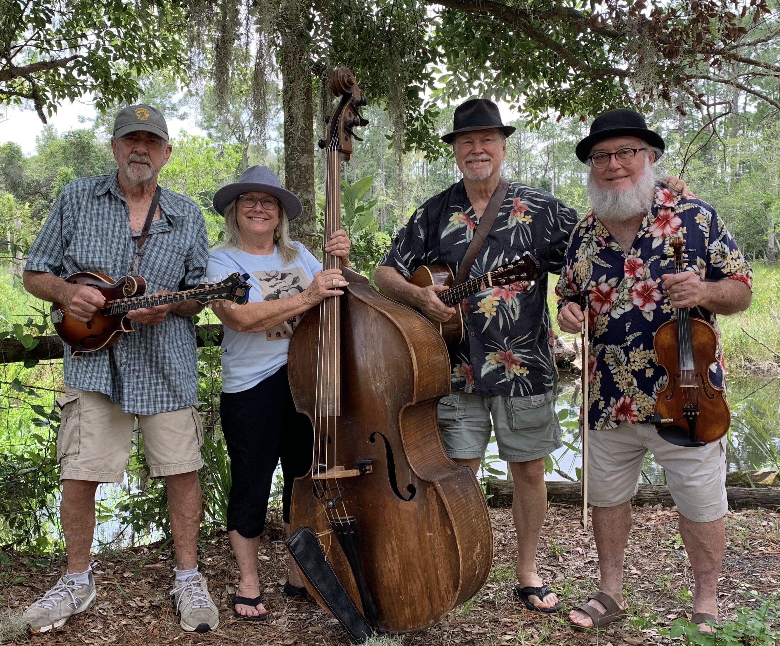 The Rochelle Ramblers keep toes tapping and ears listening, as they weave their songs, tunes, and stories into an entertaining and engaging tapestry of sound. Their music comes from many places and many sources. Audiences may hear songs from Florida and elsewhere, hard-driving dance tunes, and who knows what else. The Ramblers are Bill Paine (mandolin, guitar, vocals), Bob Parsons (mandolin, guitar, fiddle, vocals), Janine Rainville (bass, vocals), and Gary Zimmerman (fiddle, guitar, vocals). They all live in North Florida: Bill – Rochelle, Janine and Bob – Pomona Park, and Gary – Hawthorne Website